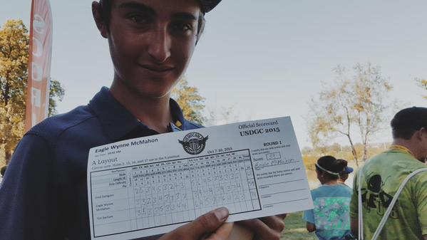 The 1st round of the 2015 United States Disc Golf Championship is just about in the books! Your 1st round leader with the hot round of 56 (-11) is 2008 US Champion Nate Doss. Doss played a great round and finds himself up by 3 strokes over Nate Sexton and first timer, Eagle McMahon.