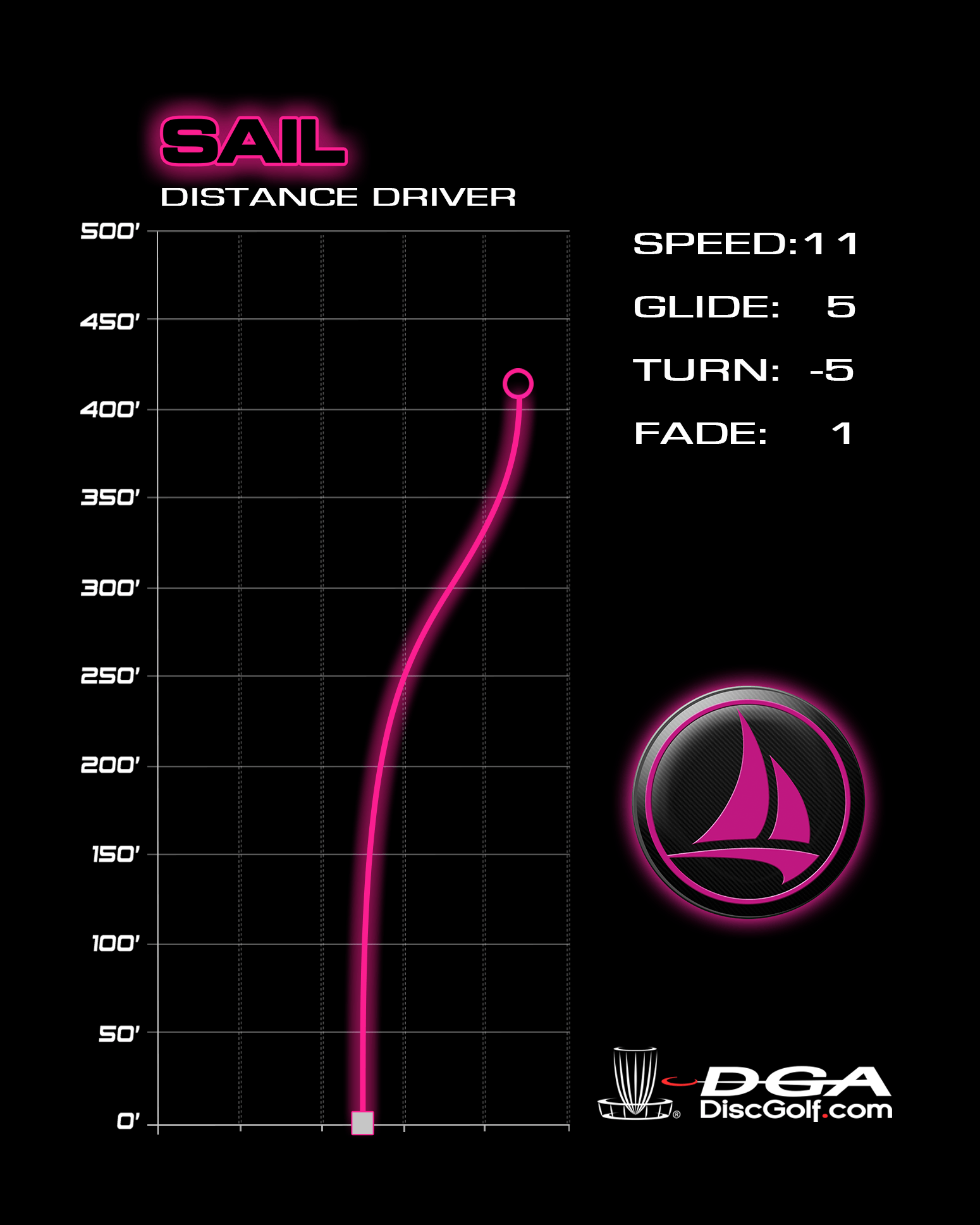 Flight – If you know anything about flight numbers, you will recognize immediately that this disc is very under-stable. With a flat release (RHBH) the Sail will glide straight for just a bit before turning over very slowly and finishing right. In a hyzer flip situation you can get more of a straight flight before it turns over. This is what this disc is made to do. Especially for experienced or bigger arm players. For new players the Sail will give them maximum distance because it is more forgiving for a slower arm speed. New players should experience a full helix when throwing this disc and possibly see some of their longest drives.